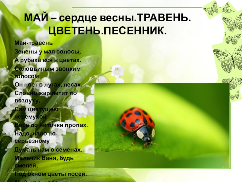 Слайд 14МАЙ – сердце весны.ТРАВЕНЬ.ЦВЕТЕНЬ.ПЕСЕННИК.