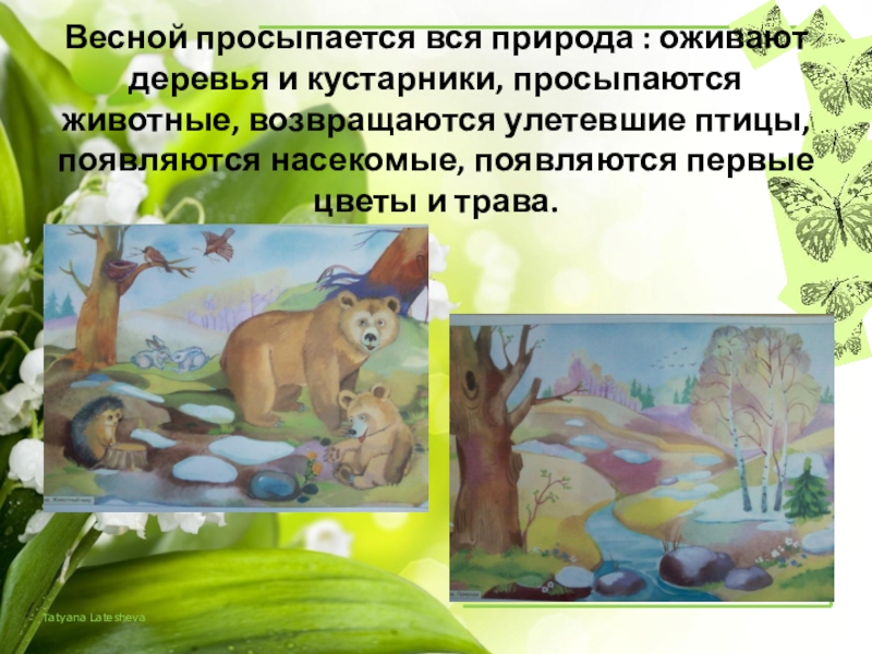 Слайд 19Весной просыпается вся природа : оживают деревья и кустарники, просыпаются животные,