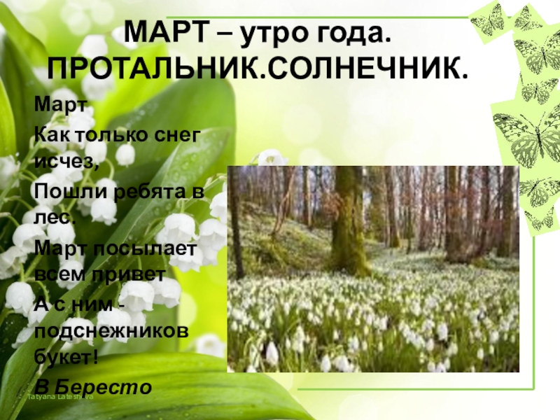 Слайд 5МАРТ – утро года.ПРОТАЛЬНИК.СОЛНЕЧНИК.