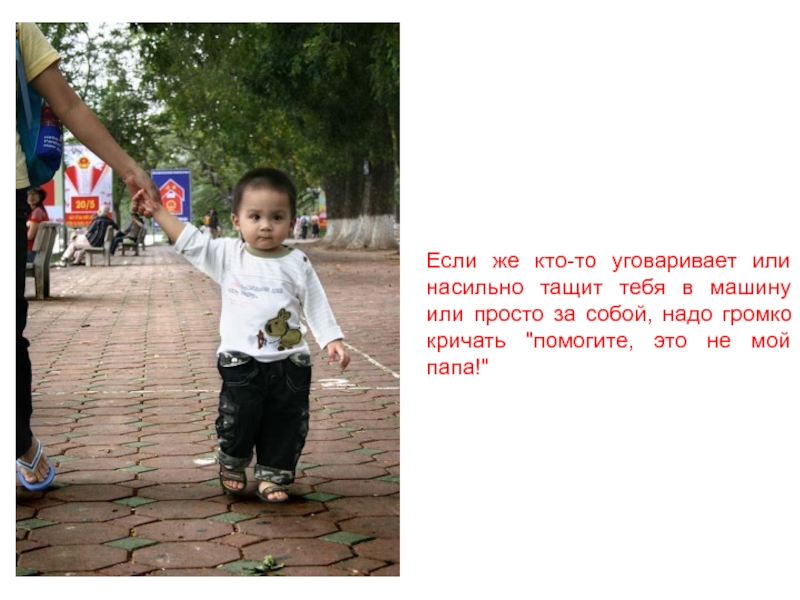 Слайд 42Если же кто-то уговаривает или насильно тащит тебя в машину или