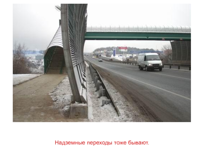 Слайд 35На самых оживлённых автомобильных трассах переходы для пешеходов устраивают подземные.