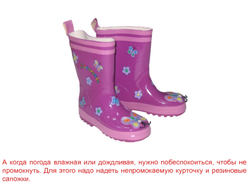 Слайд 7А когда погода влажная или дождливая, нужно побеспокоиться, чтобы не промокнуть.