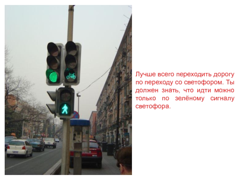 Слайд 33Лучше всего переходить дорогу по переходу со светофором. Ты должен знать,