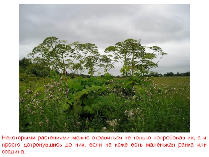 Слайд 26Некоторыми растениями можно отравиться не только попробовав их, а и просто