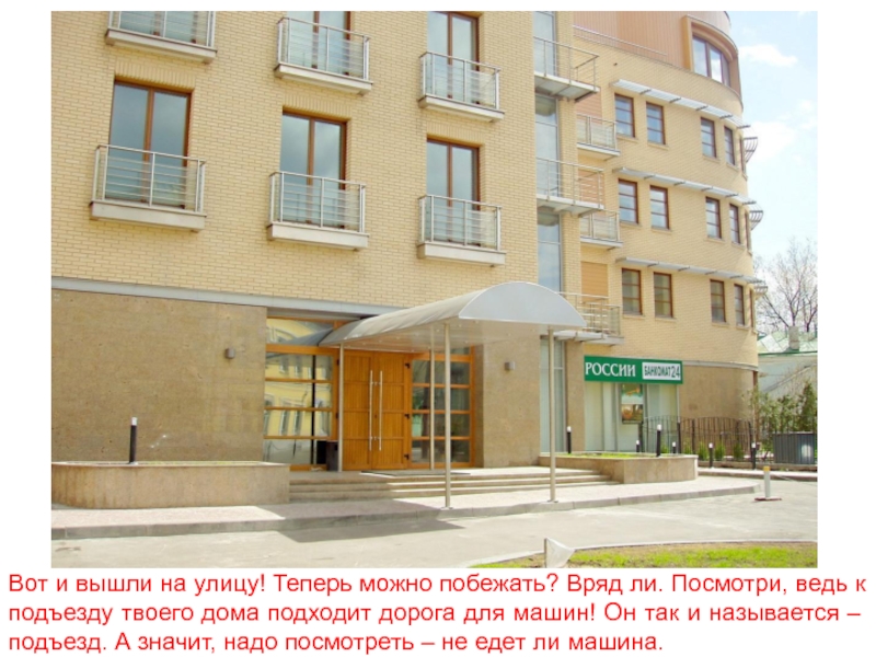 Слайд 10Вот и вышли на улицу! Теперь можно побежать? Вряд ли. Посмотри,