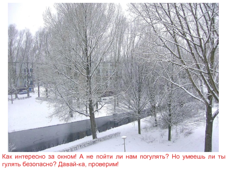 Слайд 2Как интересно за окном! А не пойти ли нам погулять? Но