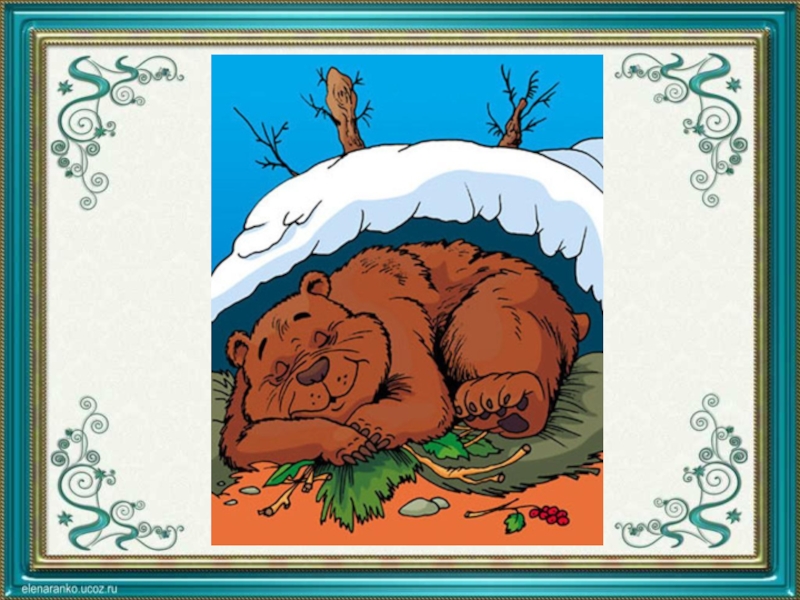 много корма. А в лесу звери готовятся к зиме. Белка прячет в дупло грибы, орехи, жёлуди. В дупле у белки тёплое гнездо. Ёж много ест. Он ловит жуков, червяков, лягушек. Зимой ёж спит в гнезде и ничего не ест. Медведь тоже ест много: ягоды, жёлуди, грибы, мёд. Осенью медведь делает себе берлогу, в берлоге медведь спит всю зиму и тоже ничего не ест.