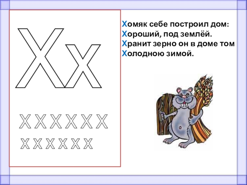Хомяк себе построил дом:Хороший, под землёй.Хранит зерно он в доме томХолодною зимой.