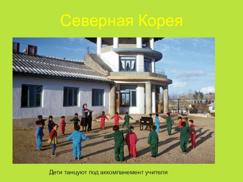 Северная Корея Дети танцуют под аккомпанемент учителя