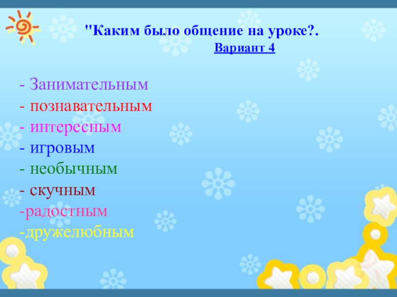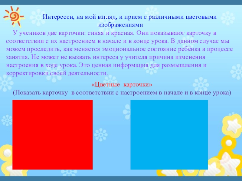 (Показать карточку в соответствии с настроением в начале и в конце урока)
