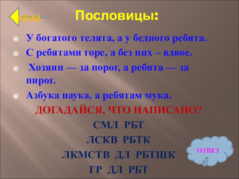 ПОСЛОВИЦЫ ФРАЗЕОЛОГИЗМЫ