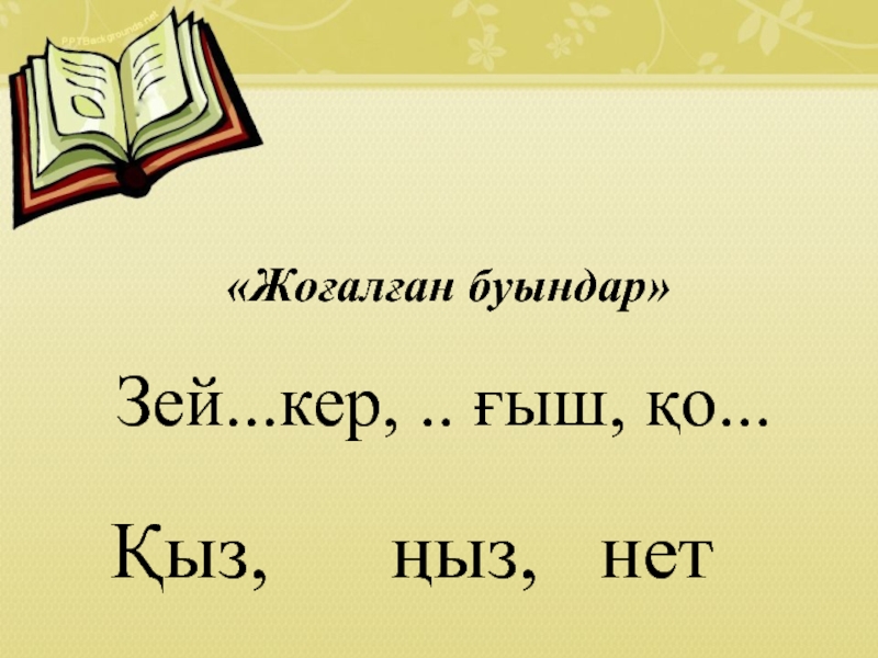 «Жоғалған буындар»Зей...кер, .. ғыш, қо...Қыз,   ңыз,  нет