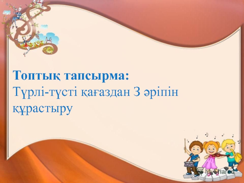 Топтық тапсырма:Түрлі-түсті қағаздан З әріпін құрастыру