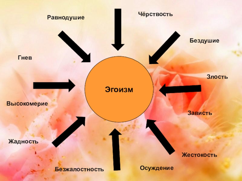 ЭгоизмРавнодушиеЧёрствостьБездушиеЗлостьЗавистьВысокомериеЖадностьЖестокостьБезжалостностьГневОсуждение