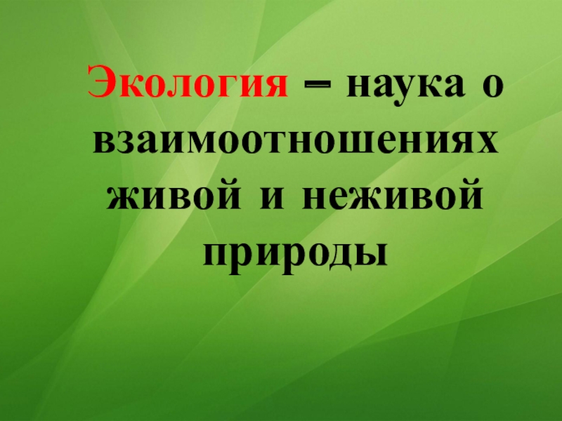 Слайд 12Экология – наука о взаимоотношениях живой и неживой природы