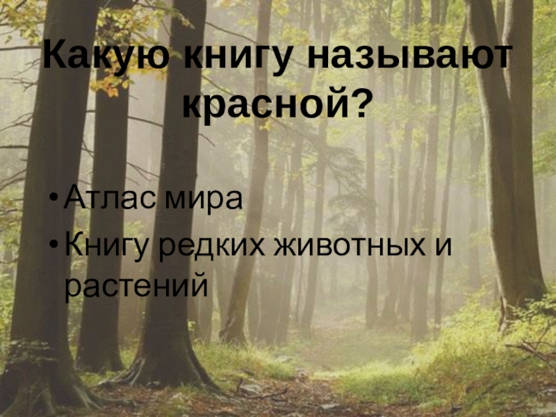 Какую книгу называют красной?Атлас мираКнигу редких животных и растений