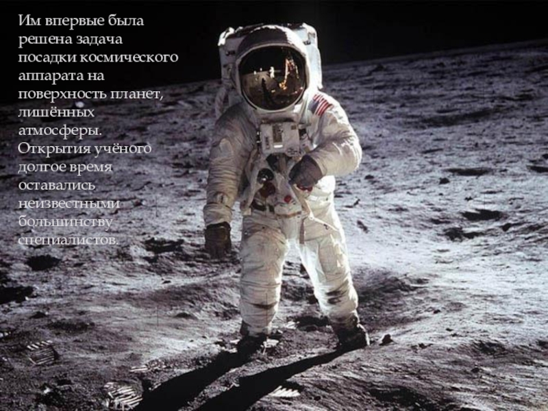 Слайд 17Им впервые была решена задача посадки космического аппарата на поверхность планет,