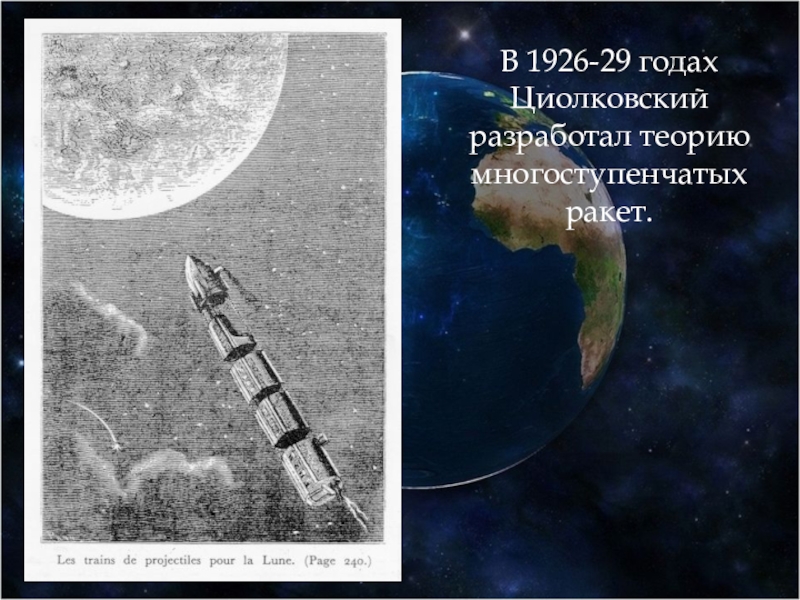 Слайд 14В 1926-29 годах Циолковский разработал теорию многоступенчатых ракет.