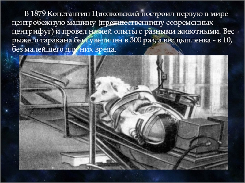 Слайд 7 В 1879 Константин Циолковский построил первую в мире центробежную машину (предшественницу