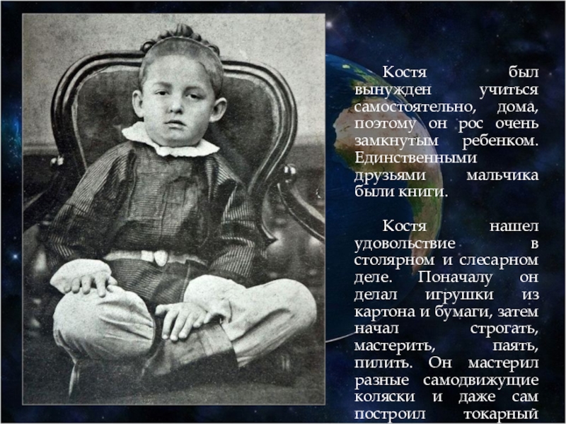 Костя был вынужден учиться самостоятельно, дома, поэтому он рос очень замкнутым