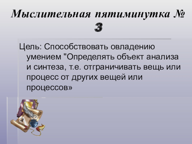 Цель: Способствовать пониманию учащимися сути назначения «мыслительных пятиминуток»