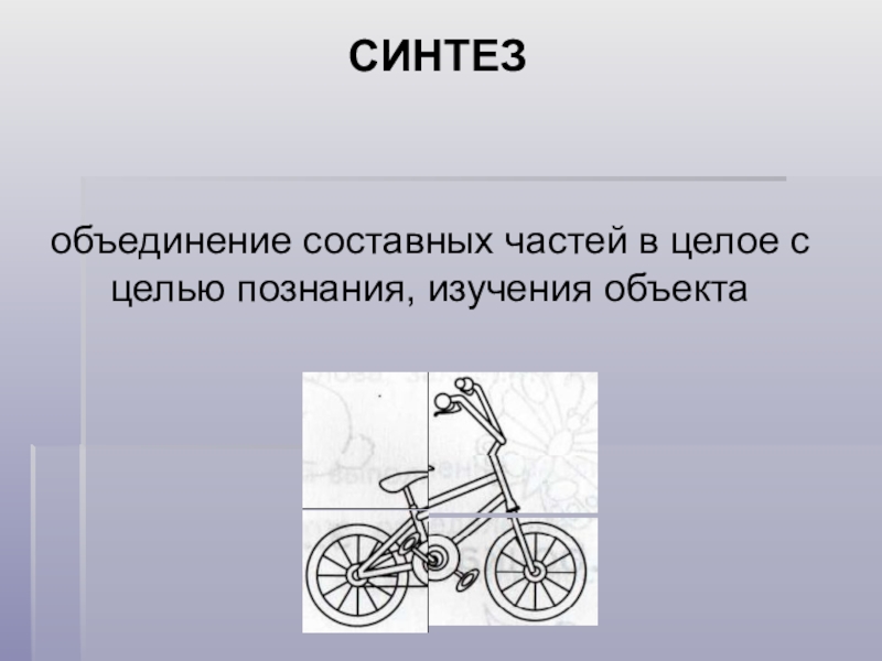 Слайд 12объединение составных частей в целое с целью познания, изучения объекта