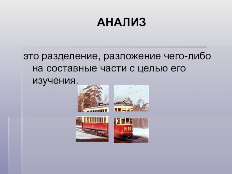 Слайд 16Анализ- это разделение, разложение на составные части с целью изучения.