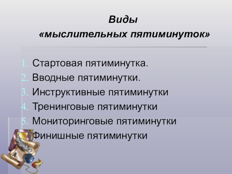 Слайд 24В основе формирования и проведения «мыслительных пятиминуток» лежат следующие положения.