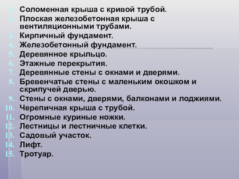 Слайд 23Соломенная крыша с кривой трубой.