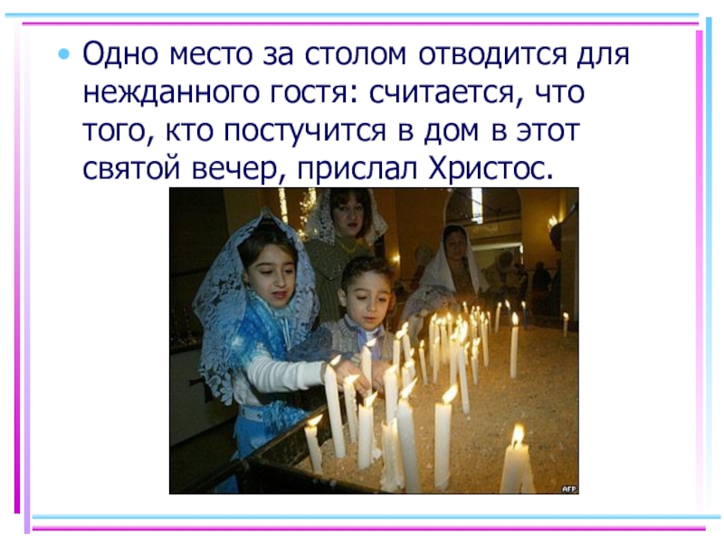 Одно место за столом отводится для нежданного гостя: считается, что того,