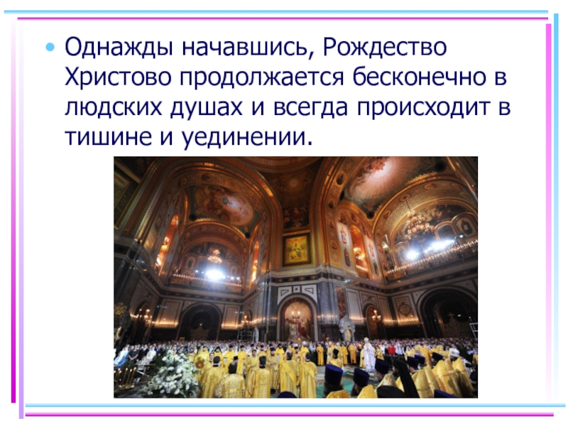Однажды начавшись, Рождество Христово продолжается бесконечно в людских душах и всегда