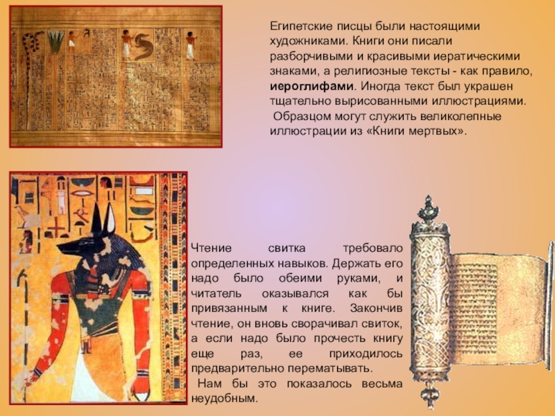 Египетские писцы были настоящими художниками. Книги они писали разборчивыми и красивыми иератическими