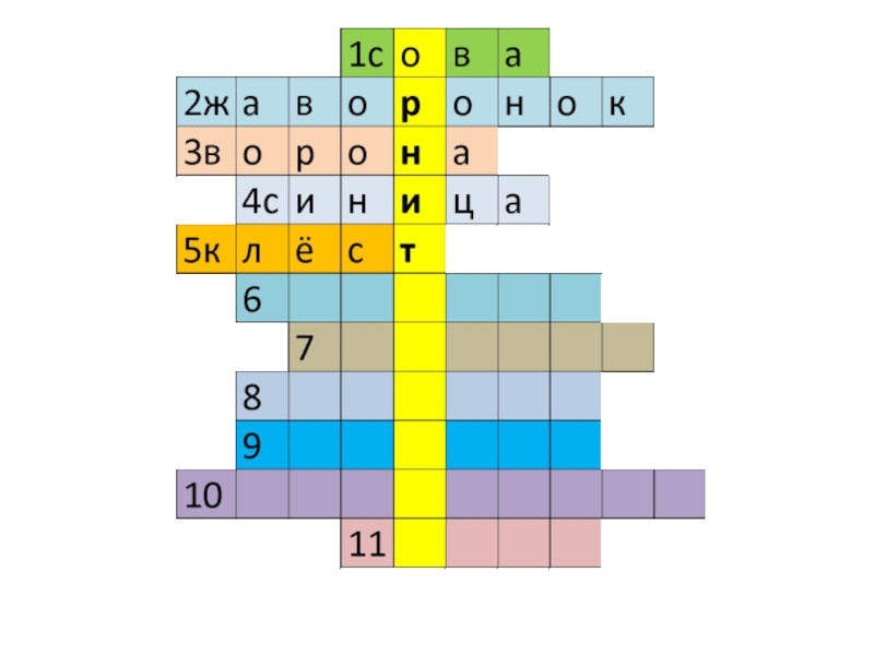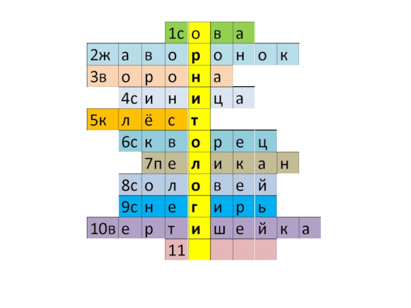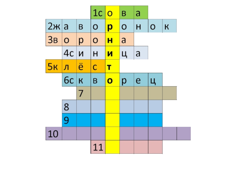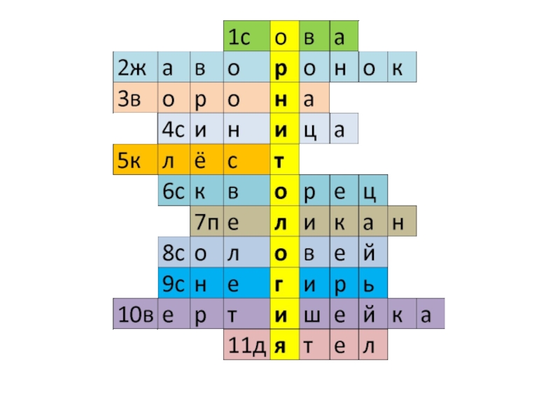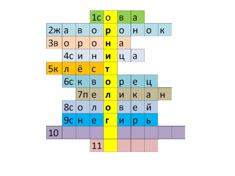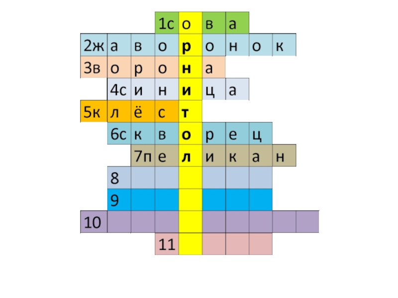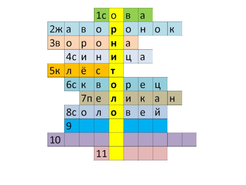 Слайд 8Угадай птиц и впиши в кроссворд