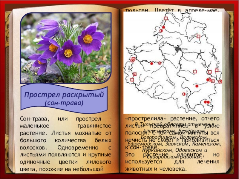 Сон-трава – растение легендарное, и называют его «прострел». Легенда гласит, что когда-то у него были широкие и большие листья, такие большие, что за ним прятался сатана, изгнанный из рая. Но Архангел Михаил метнул в растение громовую стрелу, которая и «прострелила» растение, отчего листья превратились в узкие полоски. С той самой минуты вся нечисть не смеет и приблизиться к сон-траве.