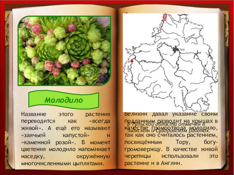 Название этого растения переводится как «всегда живой». А ещё его называют «заячьей капустой» и «каменной розой». В момент цветения молодило напоминает наседку, окружённую многочисленными цыплятами.