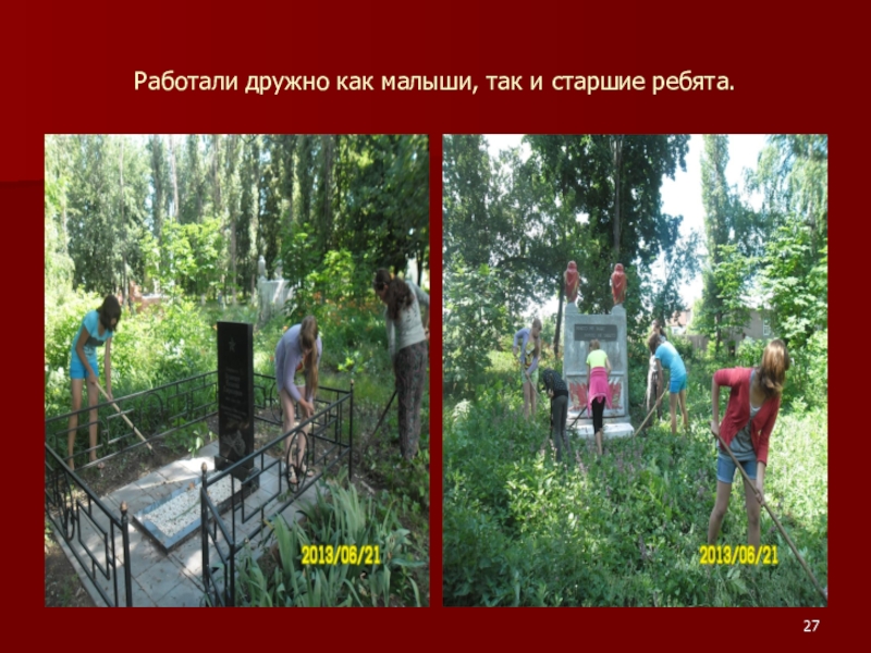Слайд 27Работали дружно как малыши, так и старшие ребята.