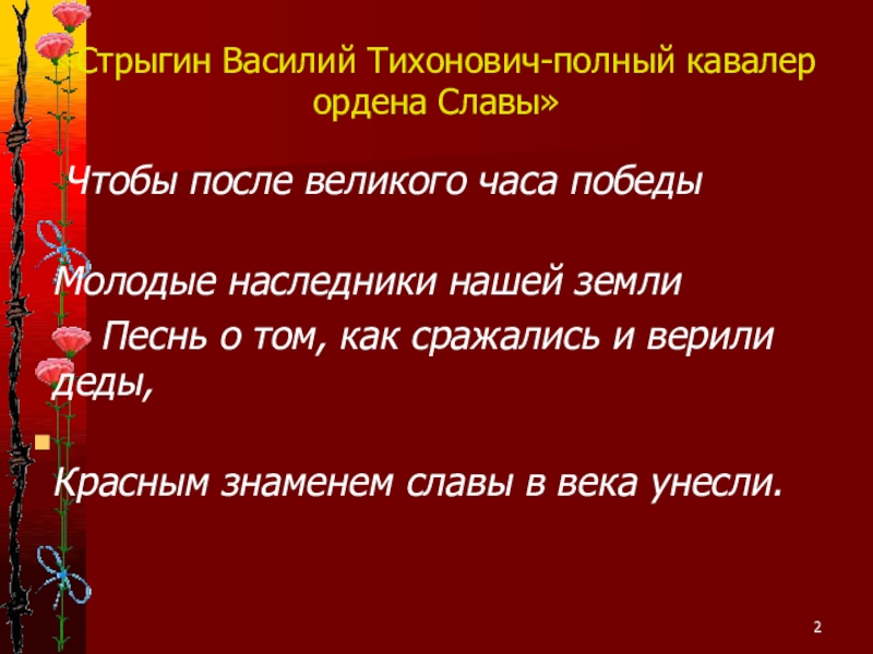Слайд 2«Стрыгин Василий Тихонович-полный кавалер ордена Славы»