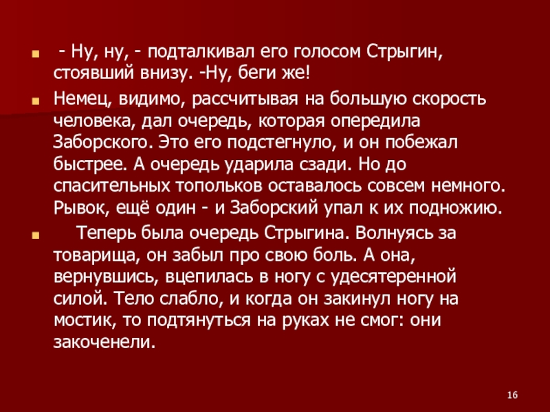 Слайд 16 - Ну, ну, - подталкивал его голосом Стрыгин, стоявший внизу.