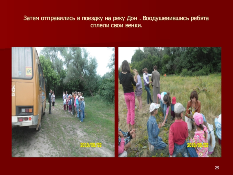 Слайд 29Затем отправились в поездку на реку Дон . Воодушевившись ребята сплели