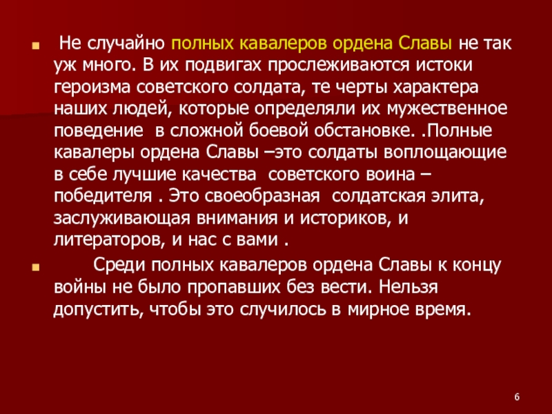 Слайд 6 Не случайно полных кавалеров ордена Славы не так уж много.