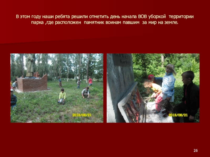 Слайд 26В этом году наши ребята решили отметить день начала ВОВ уборкой