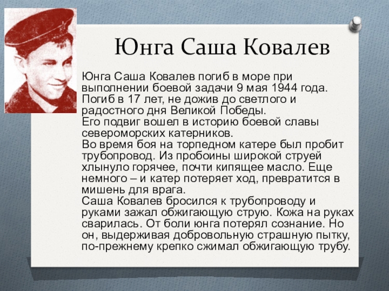 Юнга Саша Ковалев погиб в море при выполнении боевой