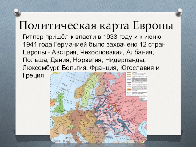 июню 1941 года Германией было захвачено 12 стран Европы - Австрия, Чехословакия, Албания, Польша, Дания, Норвегия, Нидерланды, Люксембург, Бельгия, Франция, Югославия и Греция