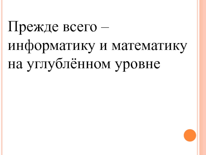 Слайд 25Прежде всего – информатику и математику на углублённом уровне