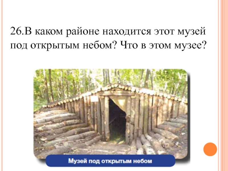 Слайд 5026.В каком районе находится этот музей под открытым небом? Что в