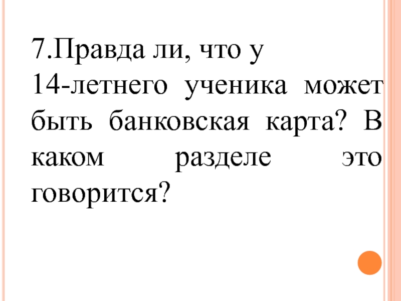7.Правда ли, что у 14-летнего ученика может быть банковская карта? В каком разделе это говорится?
