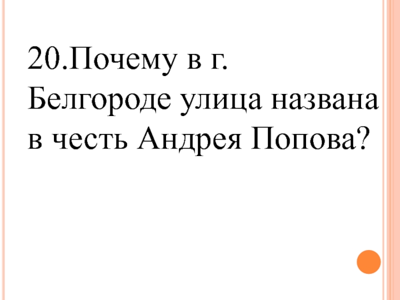 Слайд 3820.Почему в г. Белгороде улица названа в честь Андрея Попова?