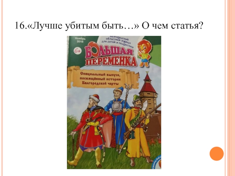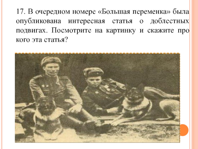 17. В очередном номере «Большая переменка» была опубликована интересная статья о доблестных подвигах. Посмотрите на картинку и