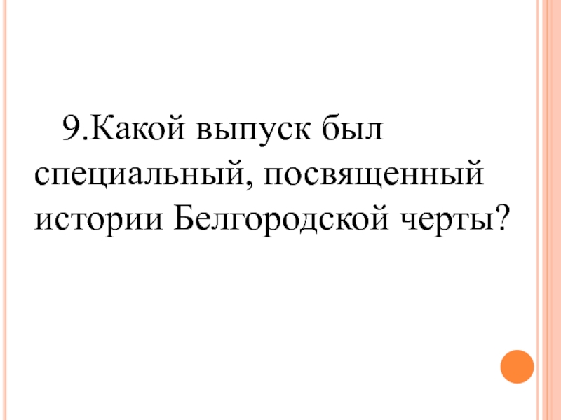Слайд 20 9.Какой выпуск был специальный, посвященный истории Белгородской черты?