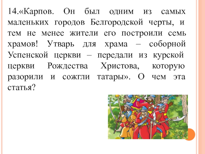Слайд 2614.«Карпов. Он был одним из самых маленьких городов Белгородской черты, и